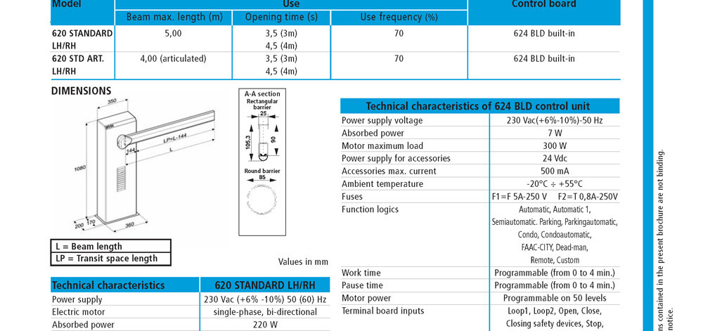 FAAC 620擋車器是專門為中等使用頻度場(chǎng)合設(shè)計(jì)的自動(dòng)欄桿;它也有關(guān)節(jié)型欄桿(折臂),適用于低天板場(chǎng)合;對(duì)要求快速開(kāi)啟的場(chǎng)合,F(xiàn)AAC 620快速型擋車器是理想的選擇。