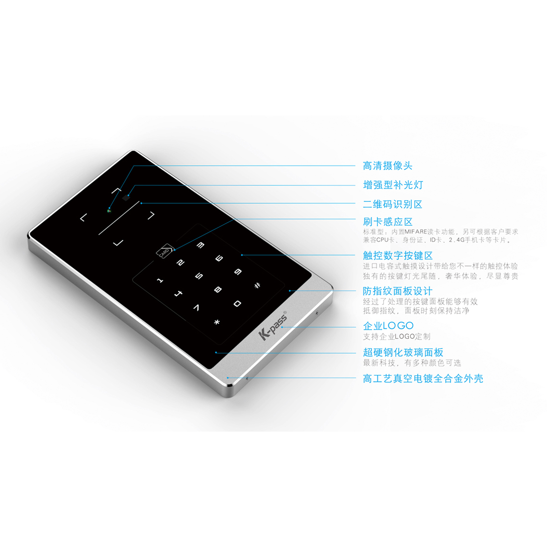 本二維碼終端是一款高端、超薄、金屬外殼、獨(dú)立型門禁控制器,具有外形美觀、功能全面、刷卡反應(yīng)快、感應(yīng)距離遠(yuǎn)、性能穩(wěn)定、安裝方便等特點(diǎn)。